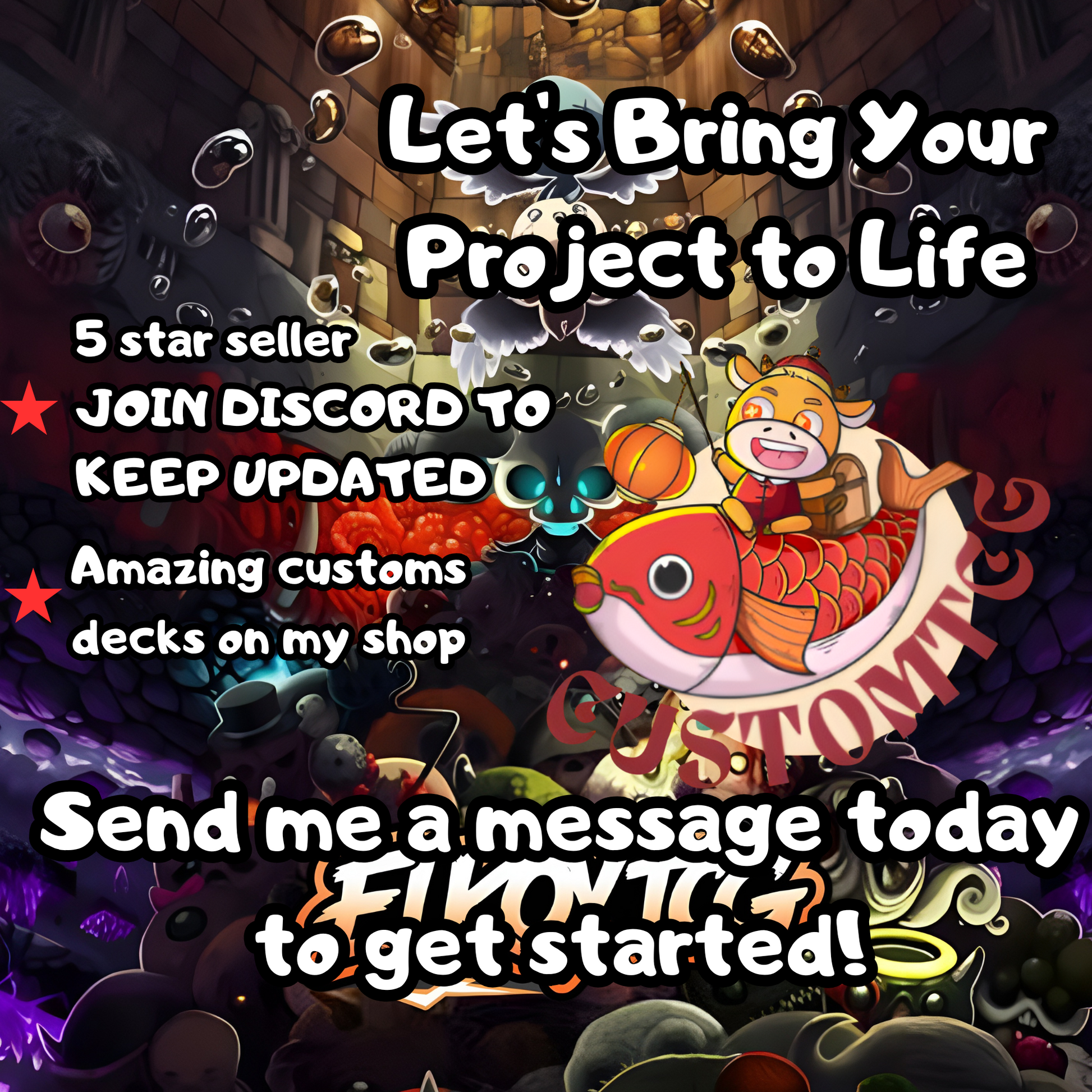 Our custom decks offer a truly unique experience, featuring fully frames, customized artwork, mana symbols, etc... designed to enhance the theme and style of each deck. Every card is meticulously crafted to provide a one-of-a-kind aesthetic while maintaining the quality you expect for seamless gameplay.