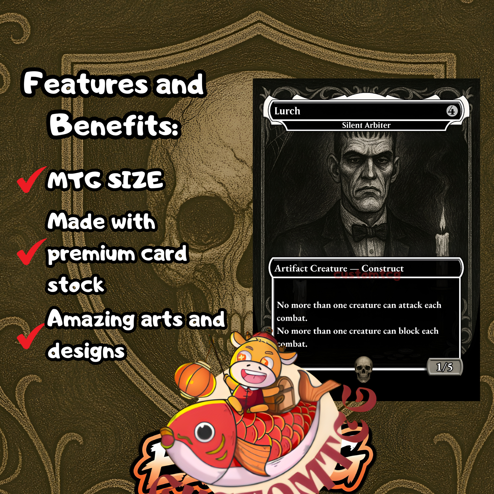 Our custom decks offer a truly unique experience, featuring fully frames, customized artwork, mana symbols, etc... designed to enhance the theme and style of each deck. Every card is meticulously crafted to provide a one-of-a-kind aesthetic while maintaining the quality you expect for seamless gameplay.