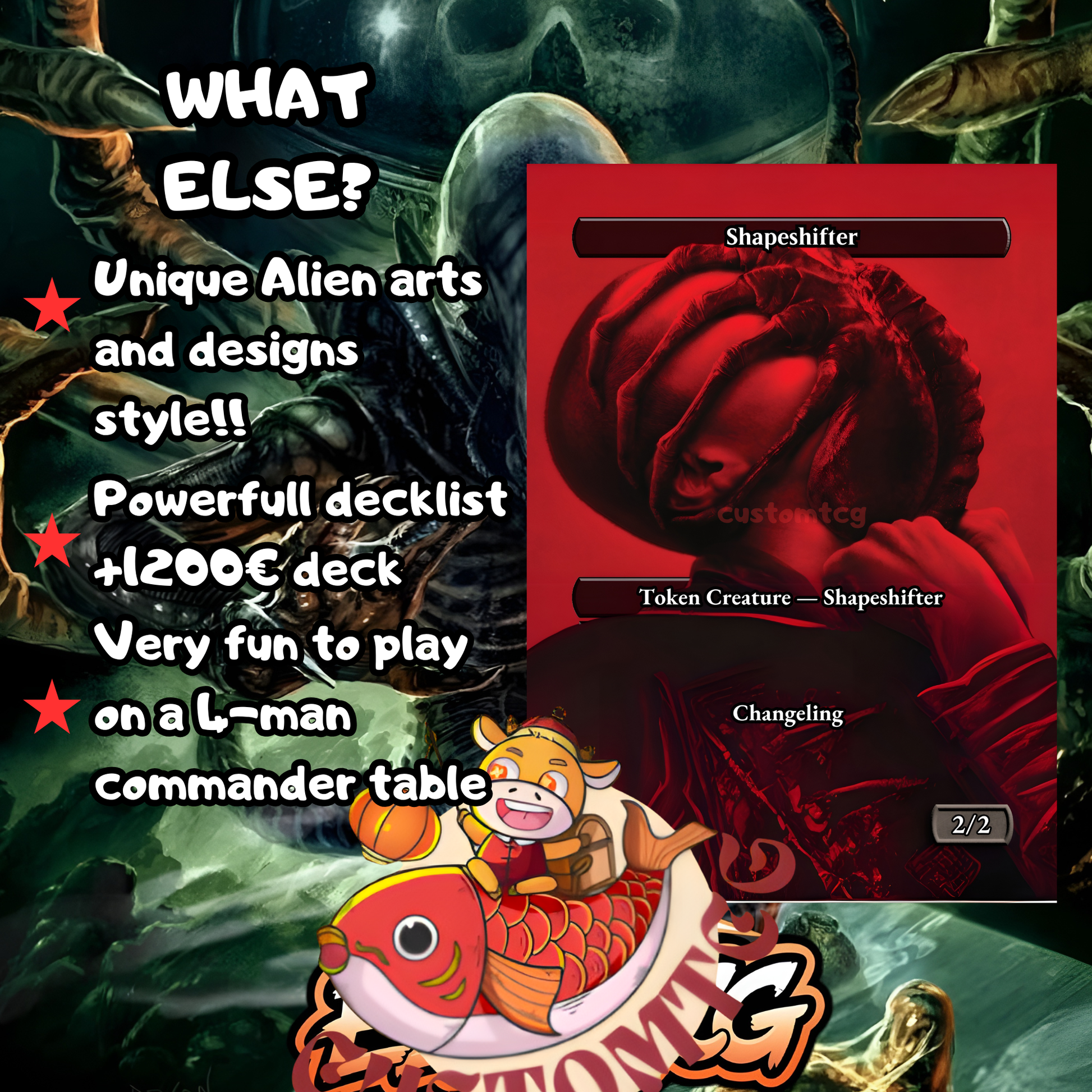 Invade the battlefield with this custom Alien-themed Sliver deck, led by the terrifying Sliver Hivelord! Every card is a full-art masterpiece, with select framebreaks that burst off the table. Featuring double-sided tokens!