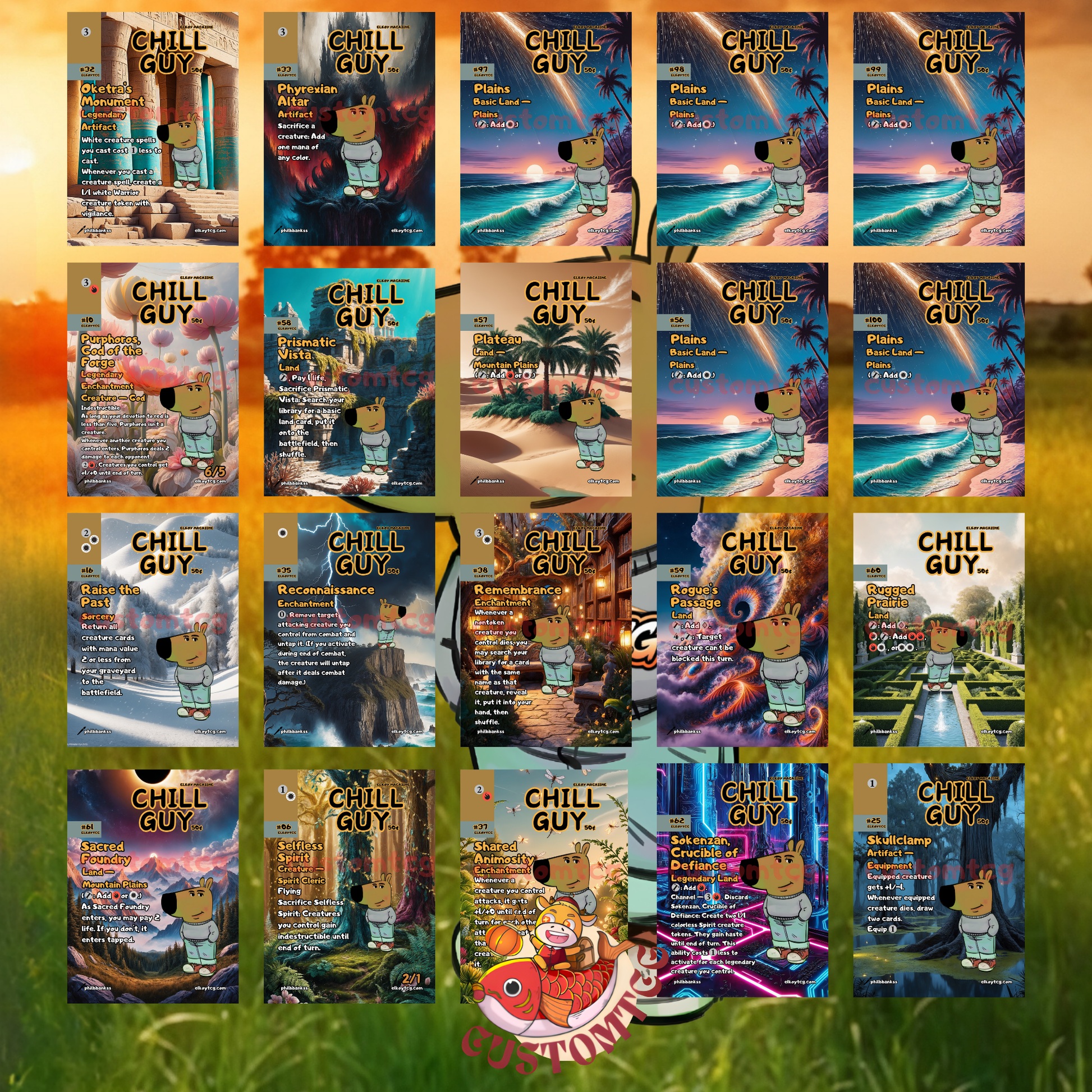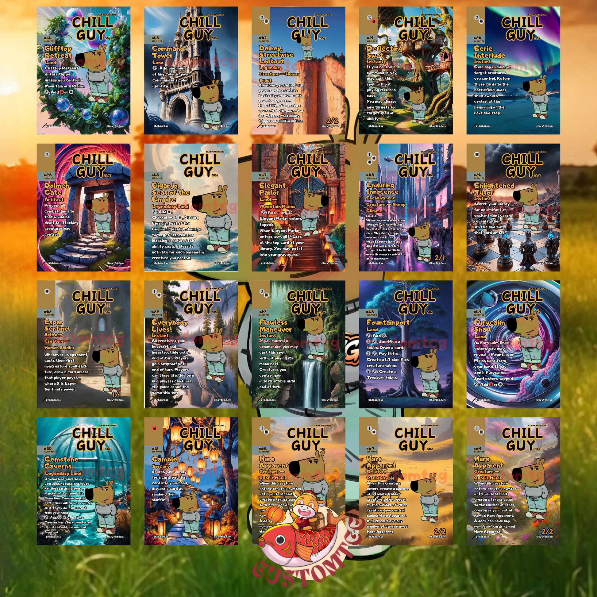 - Unique Secret Lair-Style Frame: Every card is designed with a custom frame, featuring different backgrounds to show that Chill Guy stays chill no matter where he is. 🌍💤