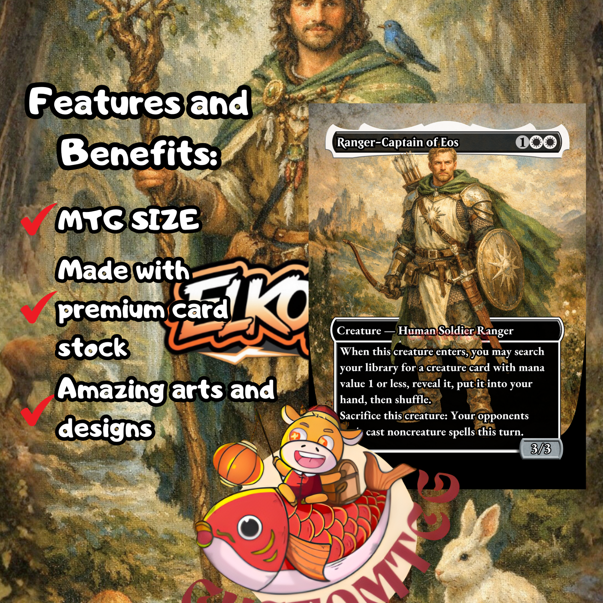 Our custom Commander decks are made in the standard card size and has rounded corners, ensuring compatibility with your collection and accessories. Measuring 63mm x 88mm (2.5” x 3.5”), these cards are designed to fit seamlessly into sleeves, deck boxes, and shuffling routines.🌟
