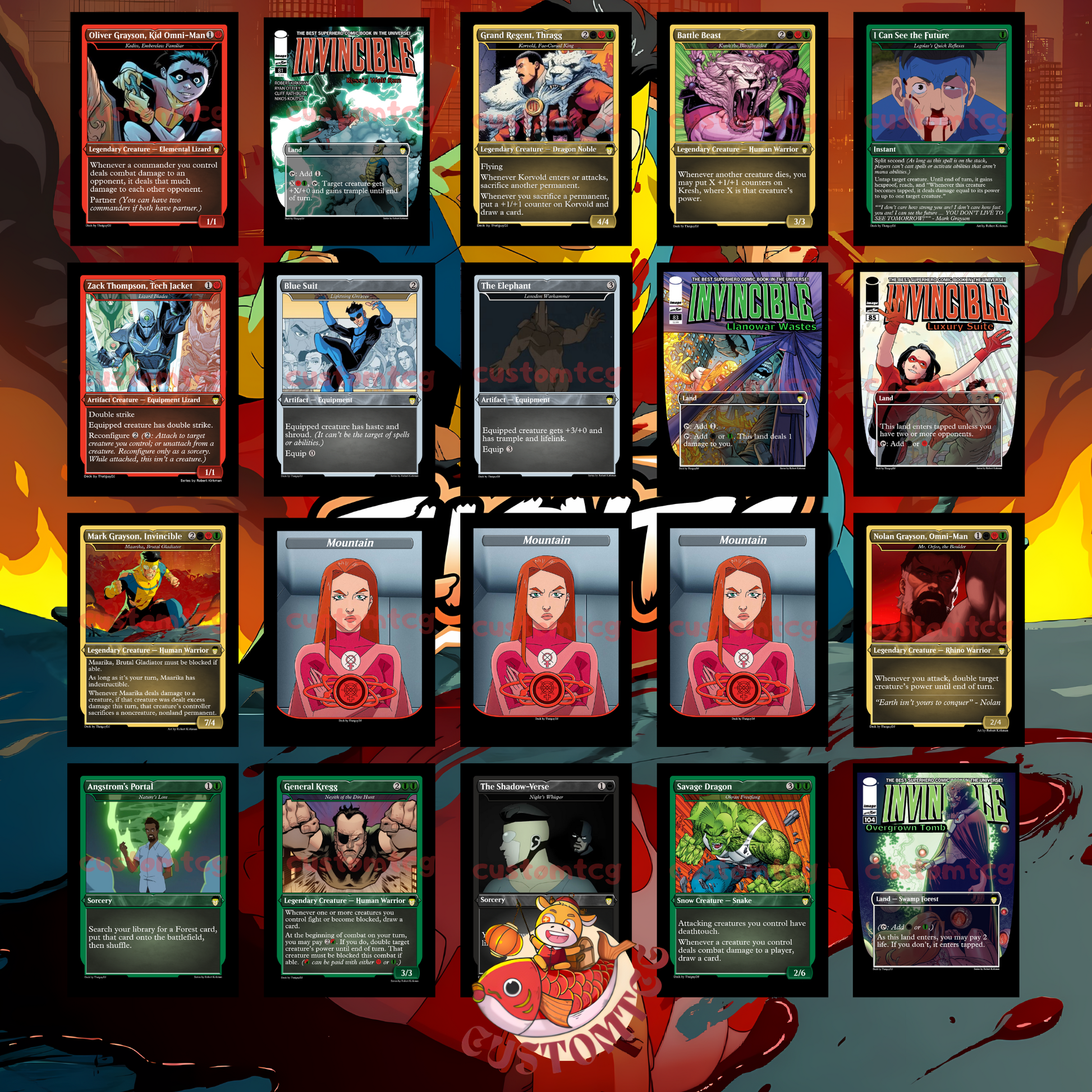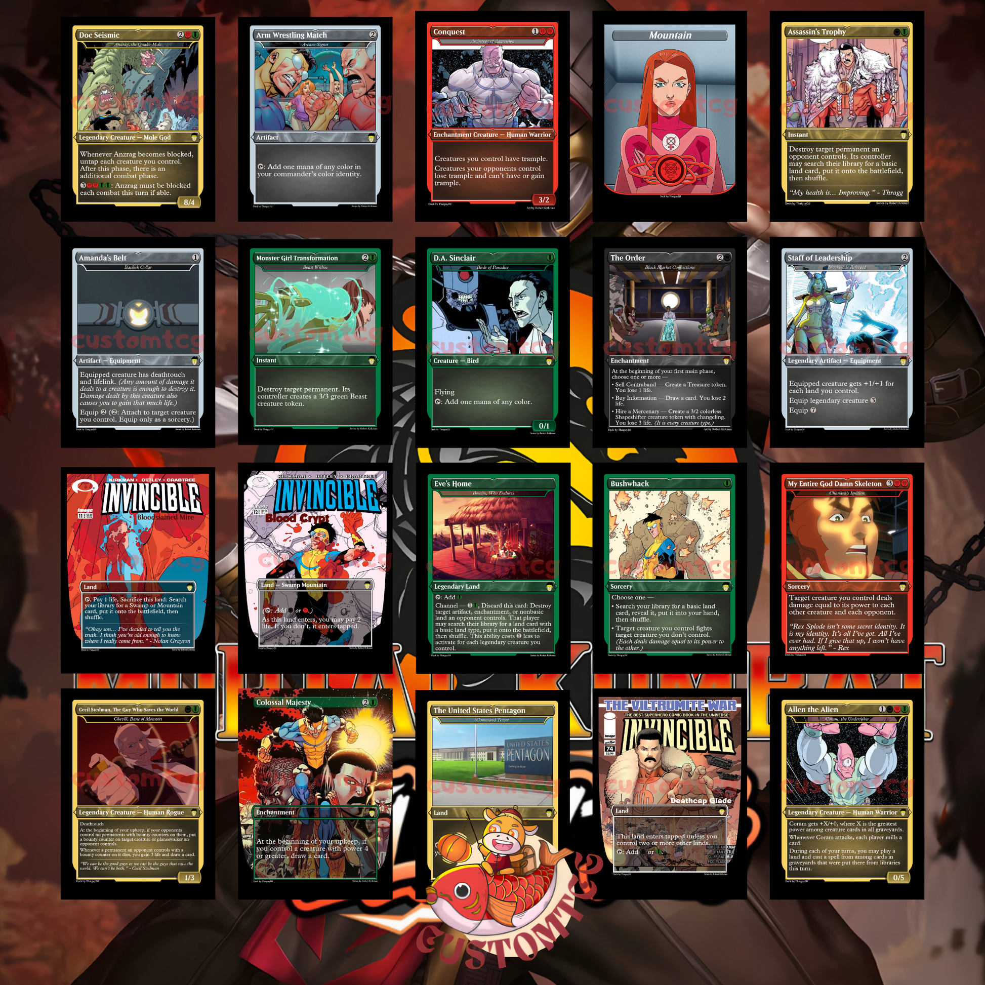 The deck is thematic from Invincible, a really crazy series, the decklist is from Maarika, basically the deck focuses on hitting your opponents hard and leaving them destroyed.