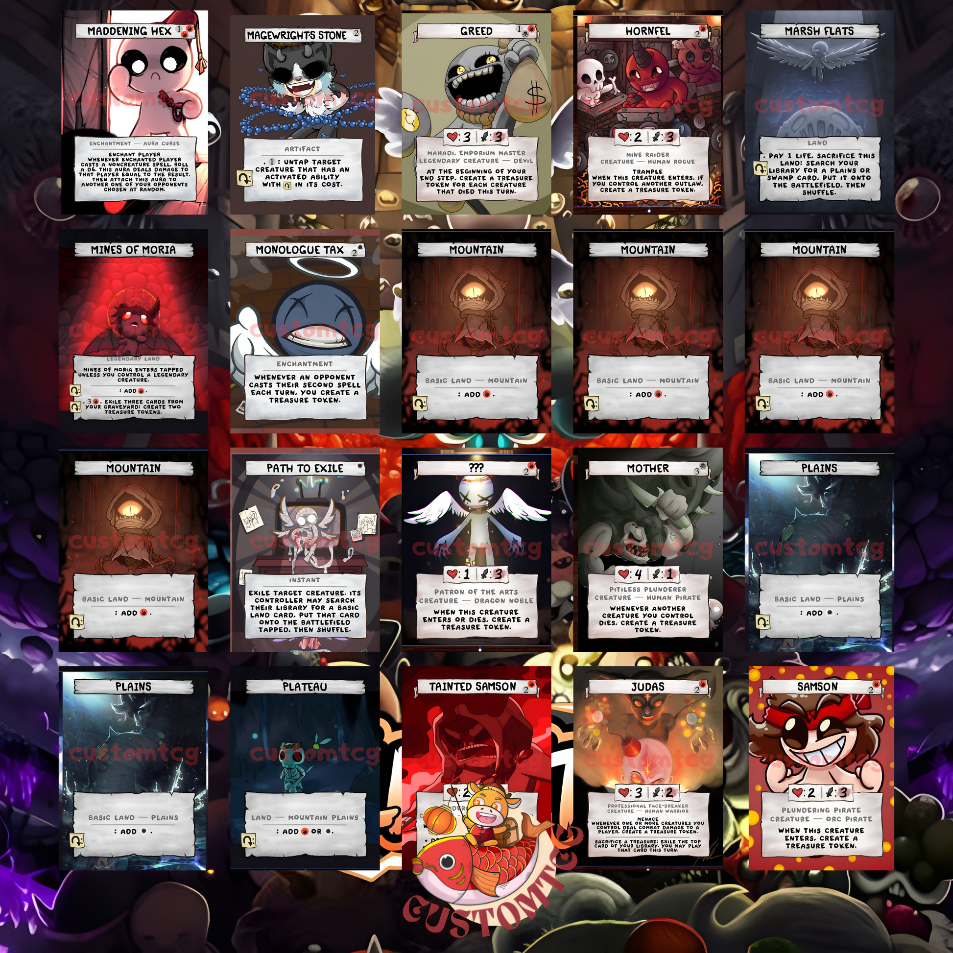 🎨 Custom Full-Art Cards – Every card features Isaac-style custom art with MTG sizing