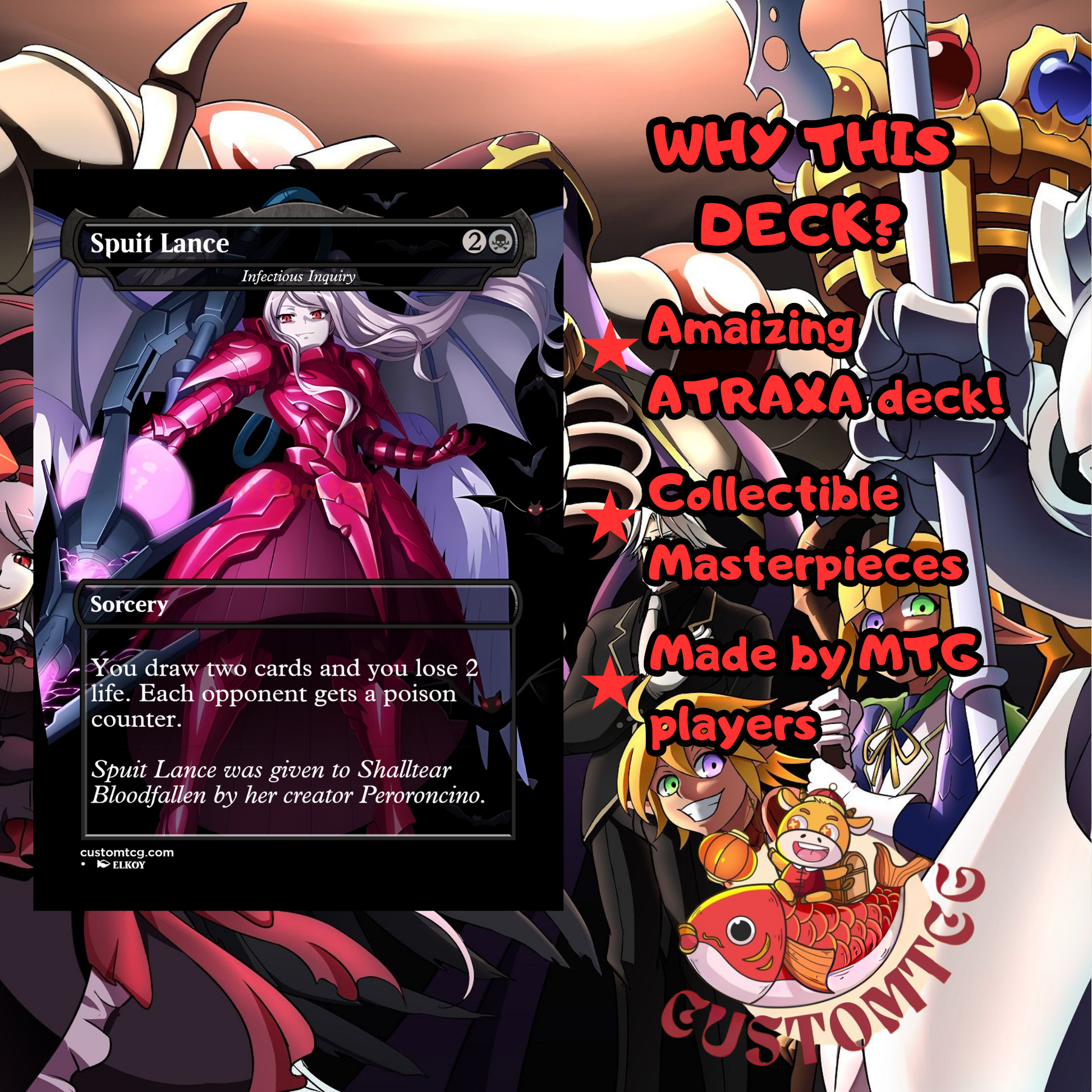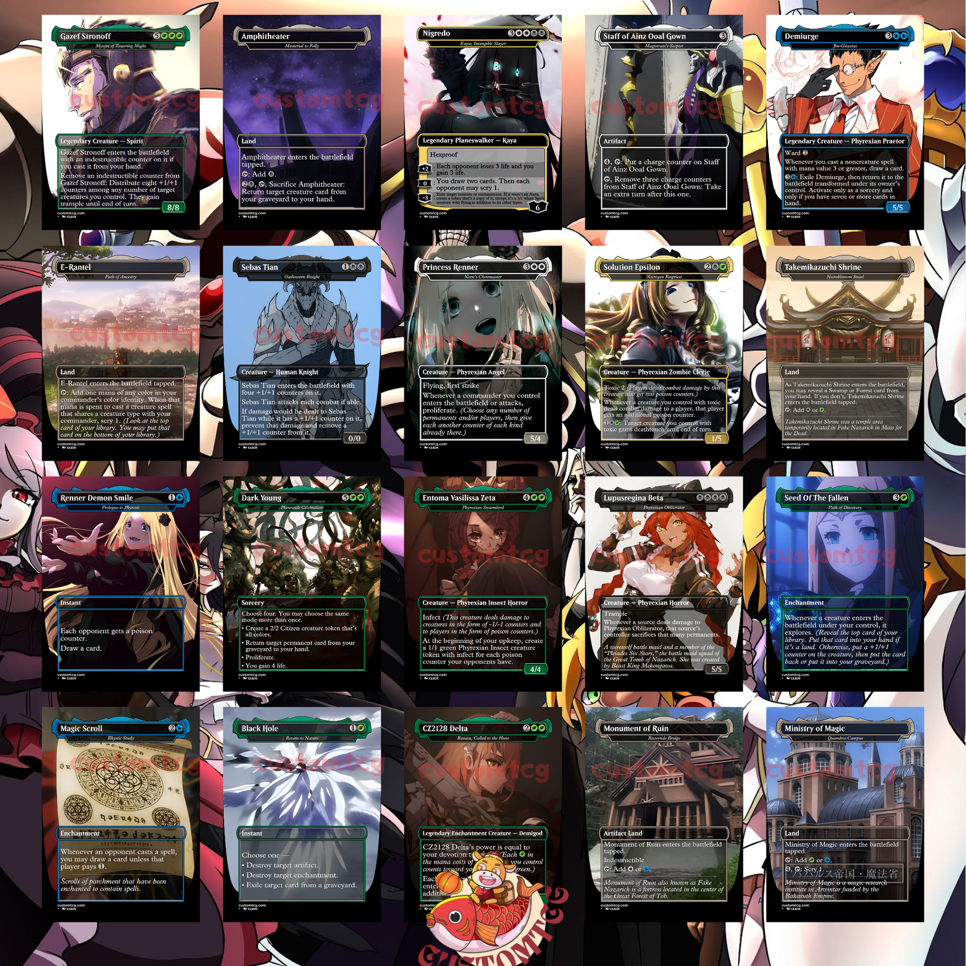 Our custom decks offer a truly unique experience, featuring fully frames, customized artwork, mana symbols, etc... designed to enhance the theme and style of each deck. Every card is meticulously crafted to provide a one-of-a-kind aesthetic while maintaining the quality you expect for seamless gameplay.