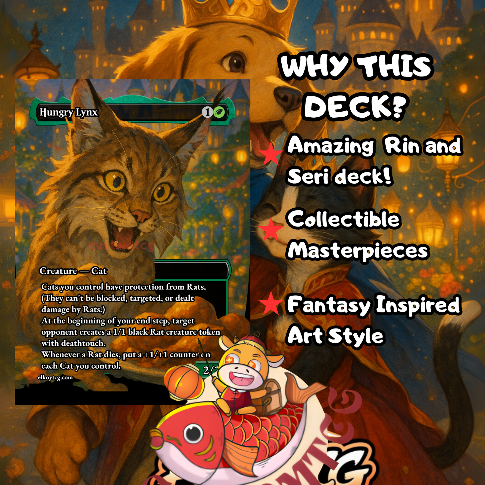 Step into a whimsical fairytale battlefield with the Rin and Seri Commander Deck – the ultimate Cat & Dog tribal experience! This fantasy-inspired masterpiece unites loyal dogs and majestic cats under one legendary duo, creating an army of adorable yet unstoppable companions.