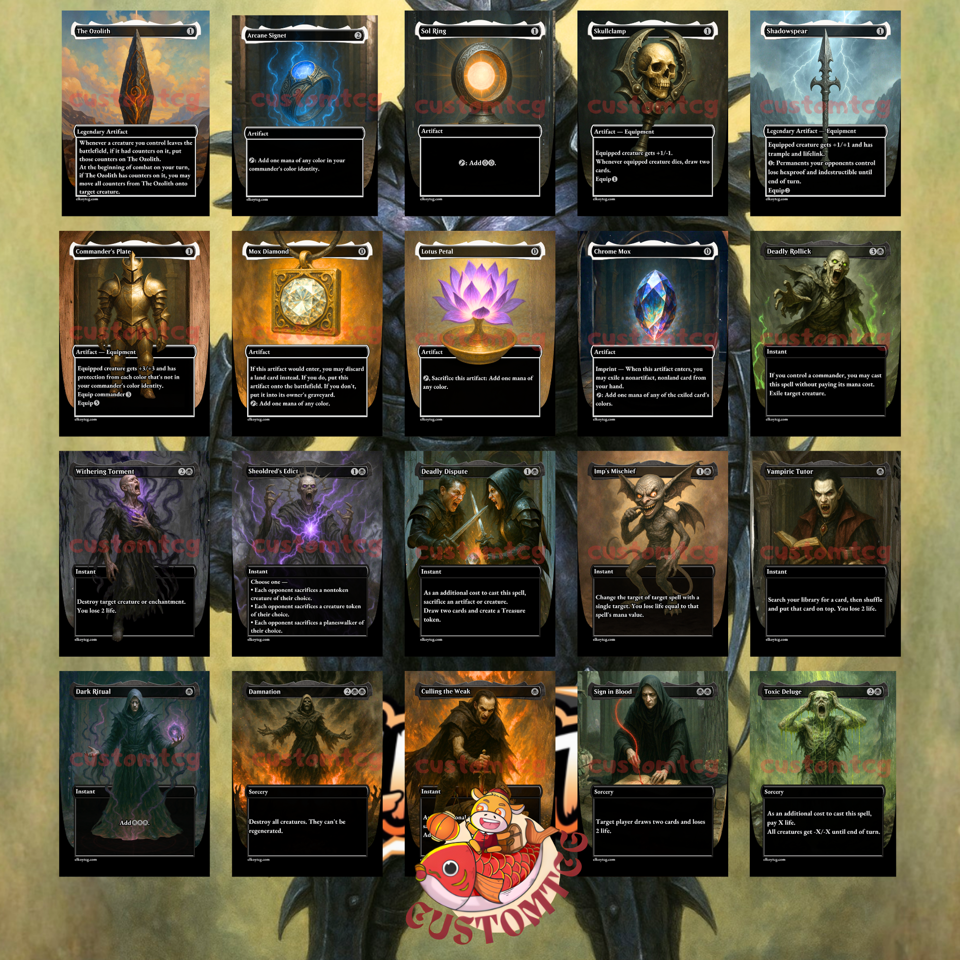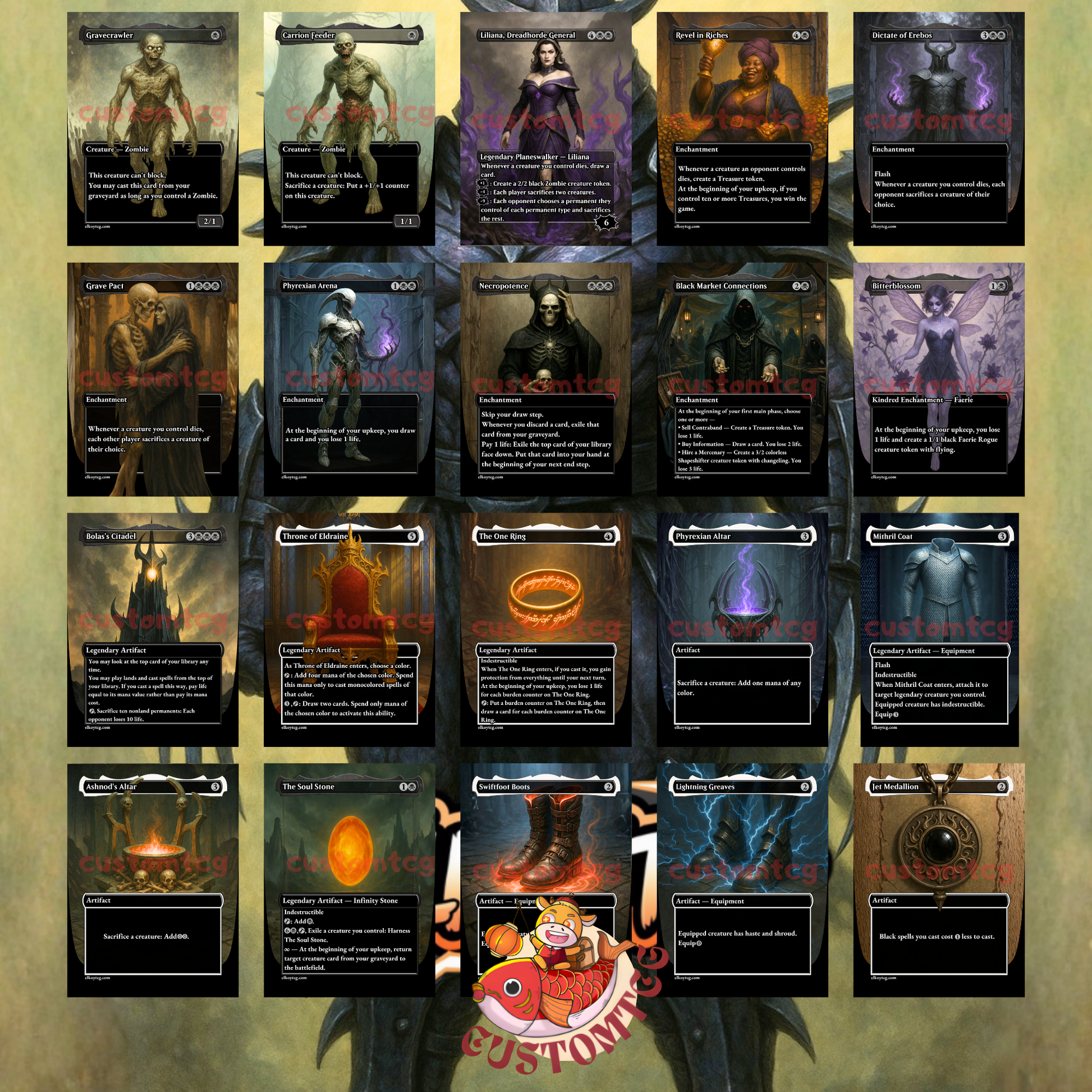 This deck is built to dominate multiplayer Commander tables with sacrifice engines, death triggers, mana acceleration, and an explosive late game. Every card features unique art and a cohesive aesthetic inspired by gothic fantasy and villain-focused themes.