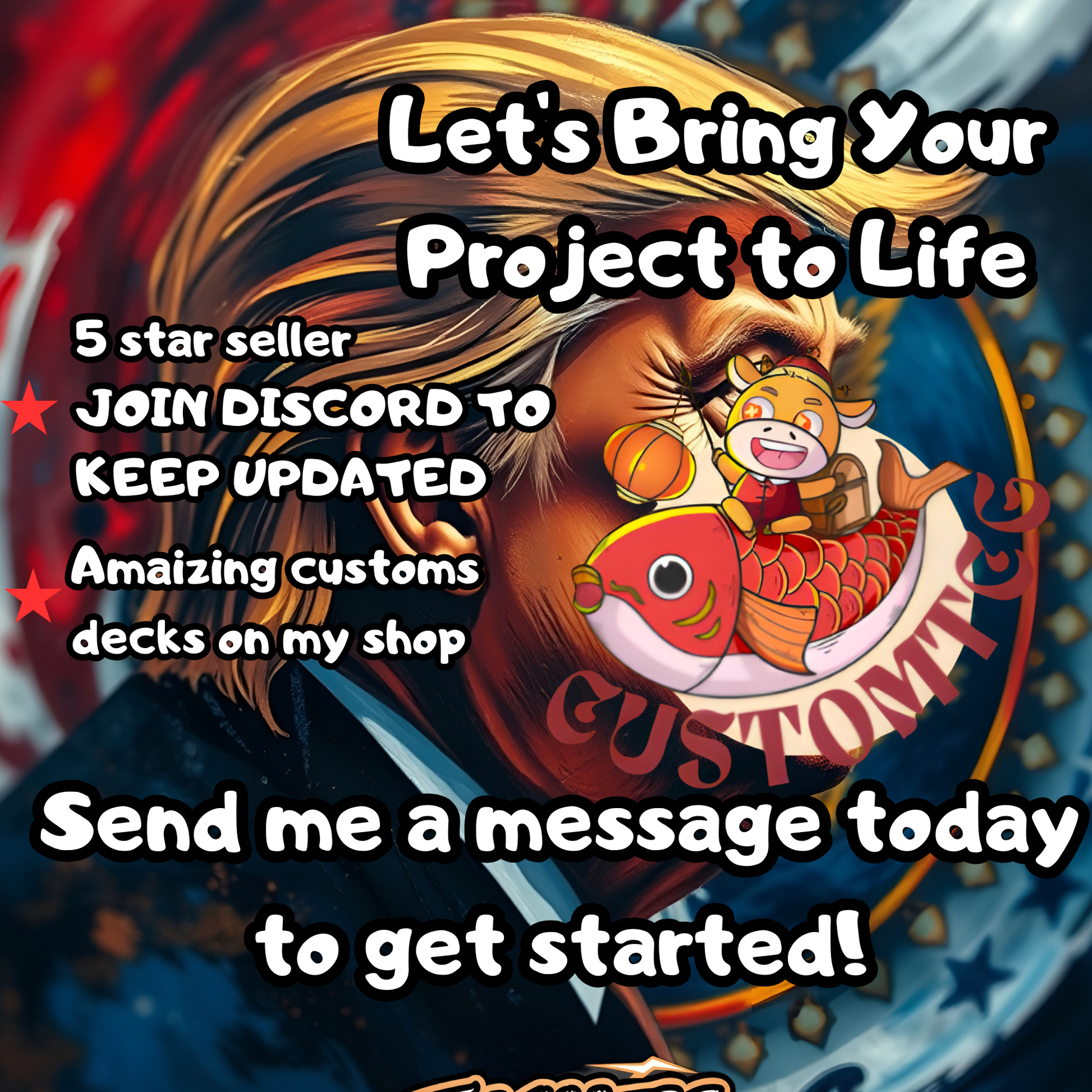Our custom decks offer a truly unique experience, featuring fully frames, customized artwork, mana symbols, etc... designed to enhance the theme and style of each deck. Every card is meticulously crafted to provide a one-of-a-kind aesthetic while maintaining the quality you expect for seamless gameplay.